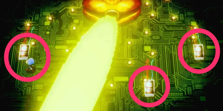 移動するとポインターが主人公を追ってくるため、線を踏まないように逃げながら電池を外していこう。