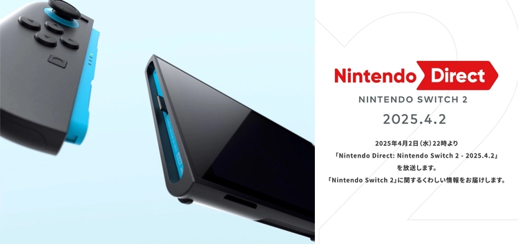 2025年4月2日(水)22時より放送予定の「Nintendo Direct: Nintendo Switch 2 – 2025.4.2」にて、「Nintendo Switch 2」に関する詳しい情報が公開される。