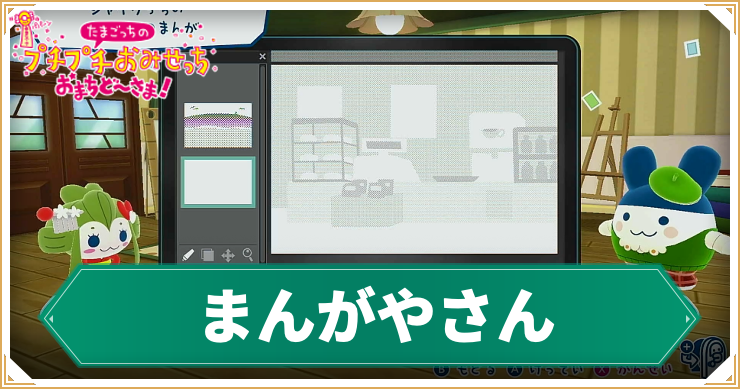 たまごっちのプチプチおみせっちの「まんがやさん」について掲載しています。やり方や高評価を取るコツをまとめていますので、たまごっちのプチプチおみせっち おまちど〜さま!の攻略にお役立てください。