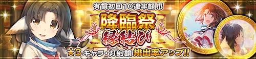 | 12月の英傑縁結びに新キャラ・新灯幻鏡が登場!期間限定新キャラ「暁アンジュ」「クラリン」や新灯幻鏡「充ちゆく紫煙」などが狙えます。 | ||