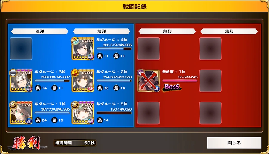 二人とも蘇生タイミングで処理落ちが発生せず、ニライカが連撃2で倒され続けるようになるパターンを引かなければいけないので、運要素は強めだが、試行回数次第で勝てるようになっています。