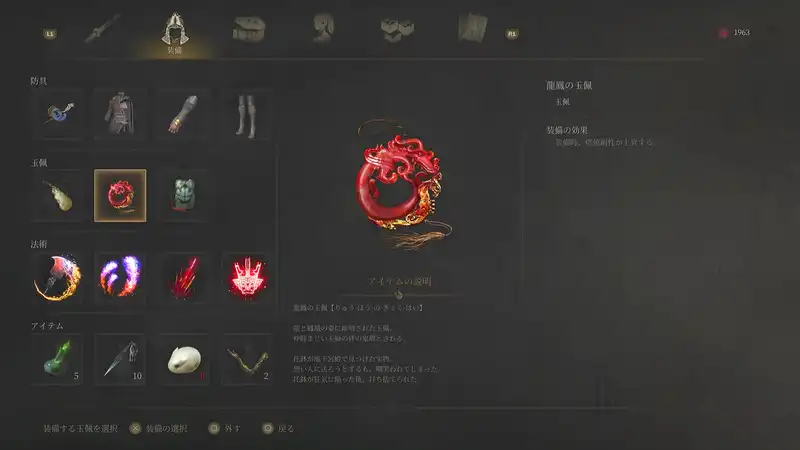 龍鳳の玉佩は燃焼耐性を上昇させる効果を持っているため、被ダメージを抑えやすくなる。