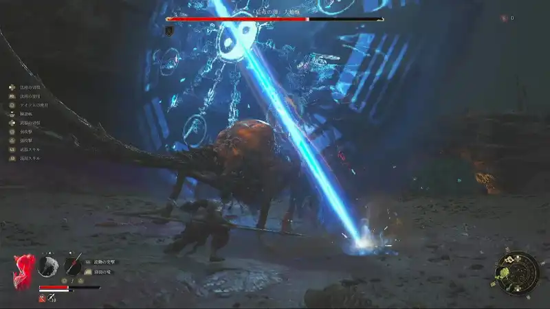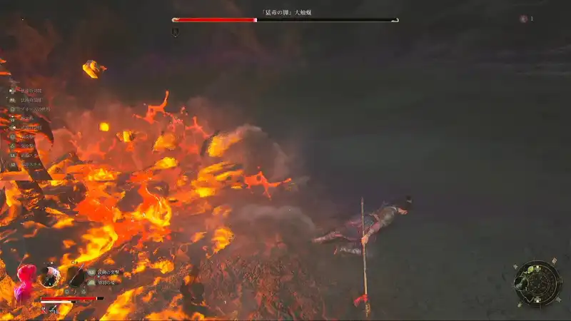 大蚰蜒は体力が低下すると地中に潜り、プレイヤーの足元から突き上げ攻撃を行なってくる。