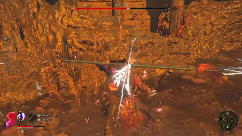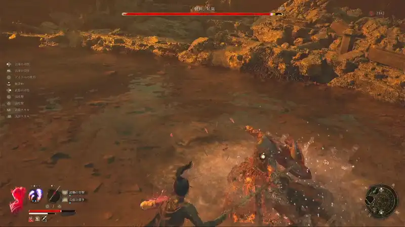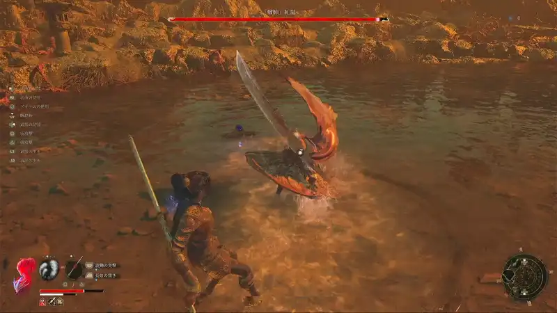 紅嵐は隙の少ないボスだが、人型なのでひるみ攻撃や吹き飛ばし攻撃が有効。
