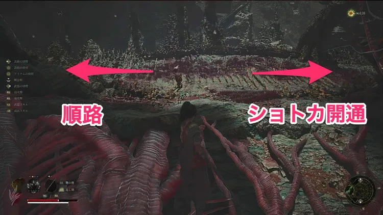 前後半戦共通でボス背後を取るように立ち回ると被ダメージを抑えることができる。