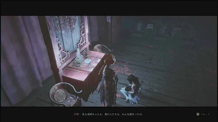 祭壇前にいる方瑶と会話