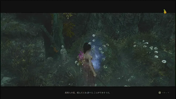 中腹にある薬商人の墓でジェスチャー「調べる」