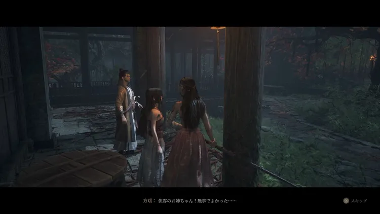 建物を出たところにいる方瑶と会話