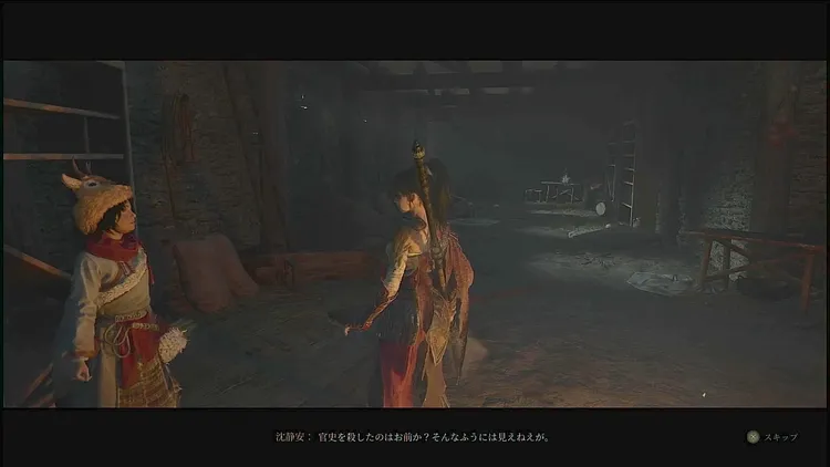 すぐ先の通路を右に進んだ先の小屋で沈静安と会話