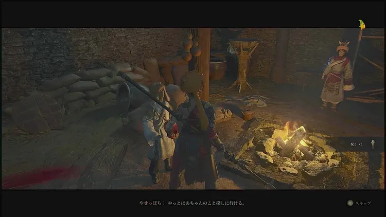 小屋に戻ってやせっぽちと会話