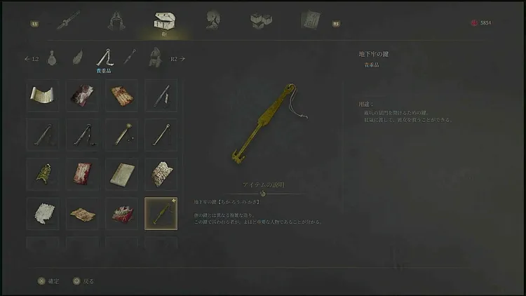 付近にいる高級侍女を倒すと「地下牢の鍵」を入手
