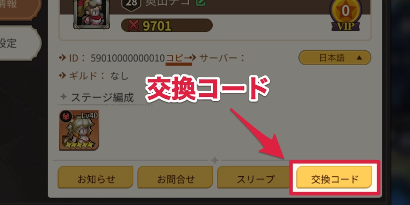 交換コードの入力方法
