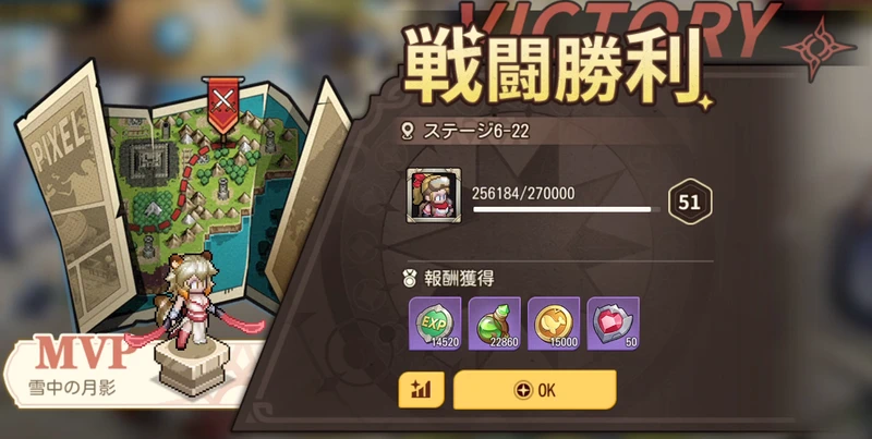 また、プレイヤーレベルの上昇が早いほどステージ進行も加速しやすく、放置報酬によるEXP増加との相乗効果で差が広がっていく構造となっている。