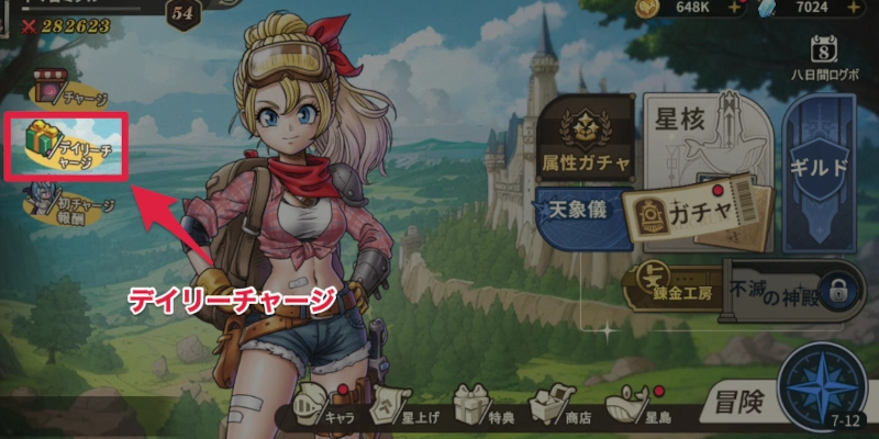 日課コンテンツの開放条件は、特定ステージのクリアとプレイヤーレベル〇〇到達によるもの。