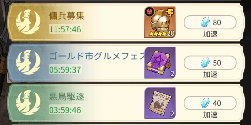 └ 所持上限も一応上げられる(要: VIPレベル4〜) - 高ランクの任務ほど所要時間が多い&出現率が低い