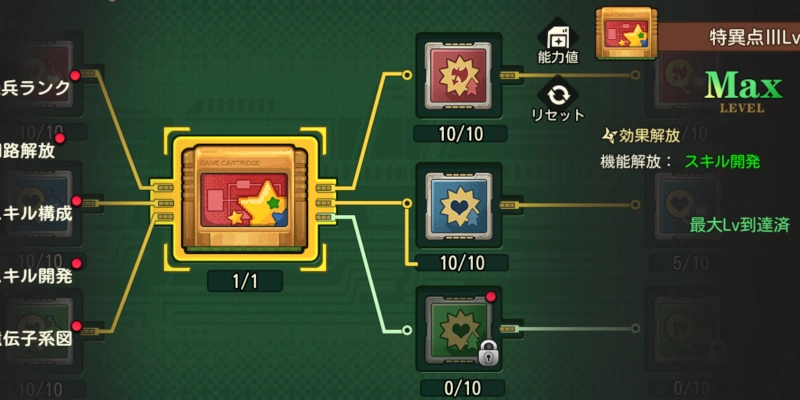 スキル開発には毎日無料のスキルガチャがあり、確率のハードルこそ高いものの、構成の幅が一気に広がる。