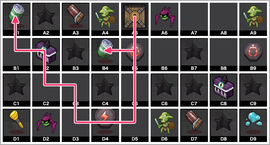 1. 敵マスを踏まないようアイテムを回収全体マップ