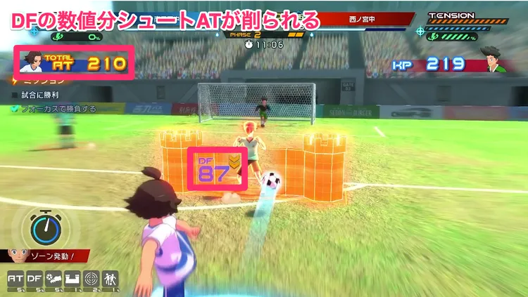 城壁によるシュートATの減衰量が非常に大きいため、相手DFの城壁に引っかからないようなシュートを打つことを意識しよう。