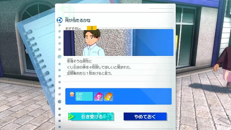 くじ引きを引かないとクエスト完了とならないため、引き忘れに注意しよう。