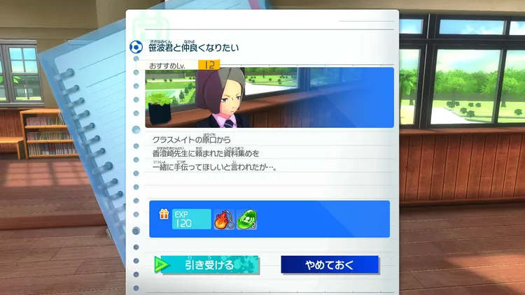 クラスメイトの原口に話しかけることでクエストを受注することができる。