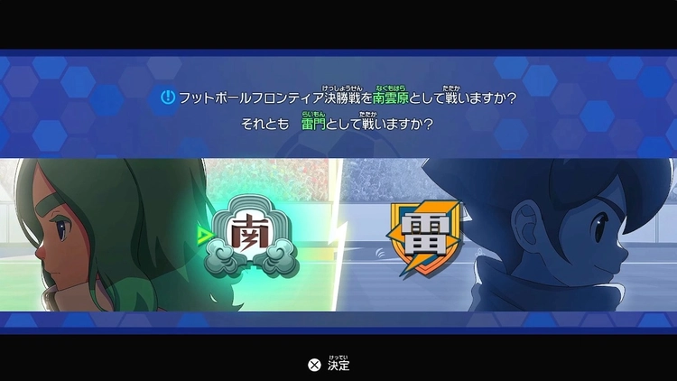 決勝戦は、今までとは趣向が異なり、南雲原中・雷門中のどちらを操作するかを選ぶことができる。