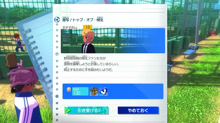 野球場の近くに柳生ファンの先輩がいるので、クエストを受けよう。