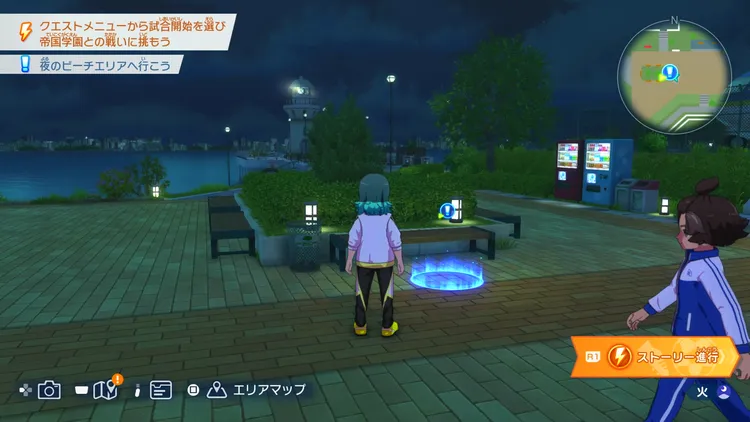 昼の時間帯だとクエストを進めることができないので時間帯を夜にしよう。