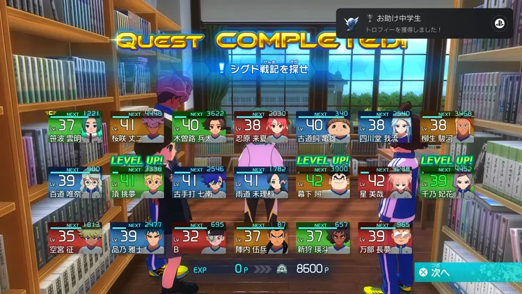 シグド戦記を探せ以外のクエストを全てクリアしている場合、実績/トロフィー「お助け中学生」を入手できる。