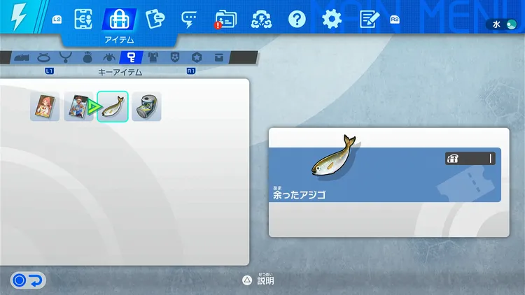 アジゴをネコに渡すとアクティビティクリアとなる。