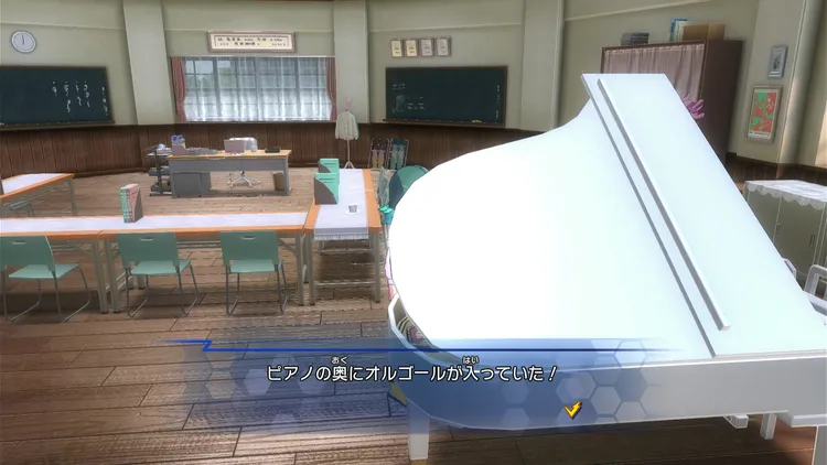 音楽室に置かれている白いグランドピアノに触れることでアクティビティクリアとなる。