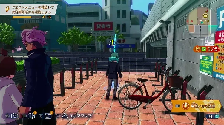 駅前にある駐輪場にボールがあるので蹴ることでアクティビティクリアとなる。