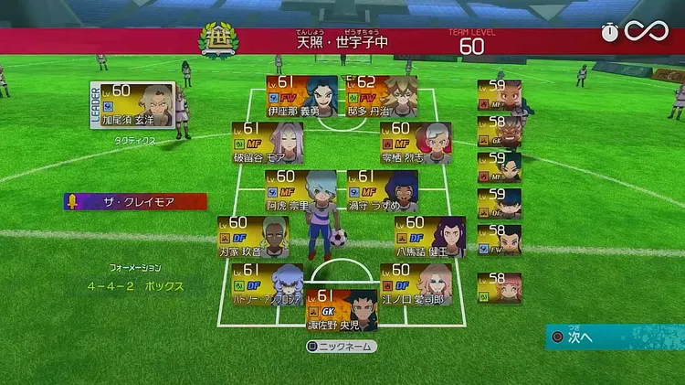ゼウス中はチームレベルが60と高く、とりわけキャプテンのアフロディ帝(邸多 丹治)はレベル62と、ストーリー中でも最もレベルの高いキャラとなっている。