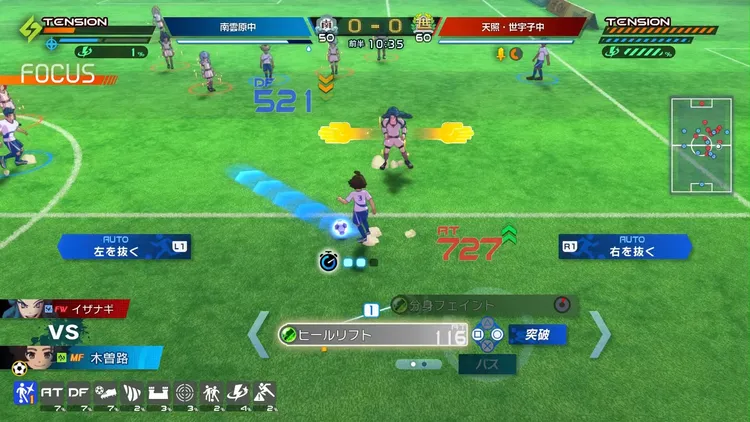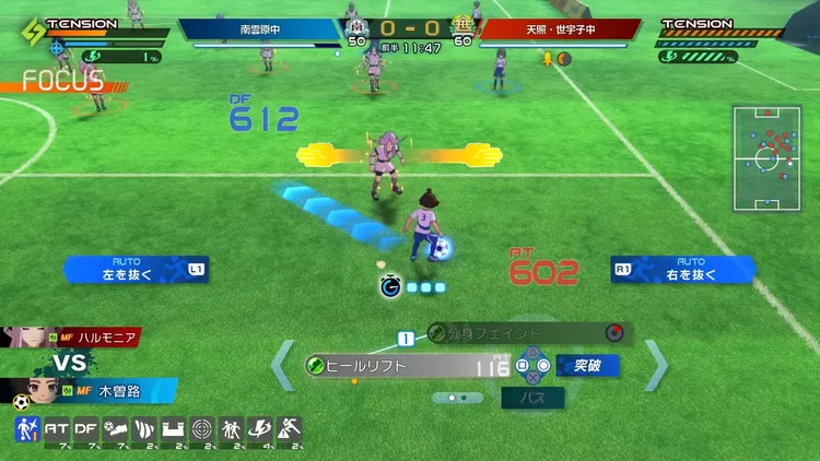 ボールを持ったら積極的にフォーカスに挑みに行くことで効率的にテンションを稼ぐことが可能だ。(DFだとステータスが心もとないため、MFでぶつかりに行くのが無難)
