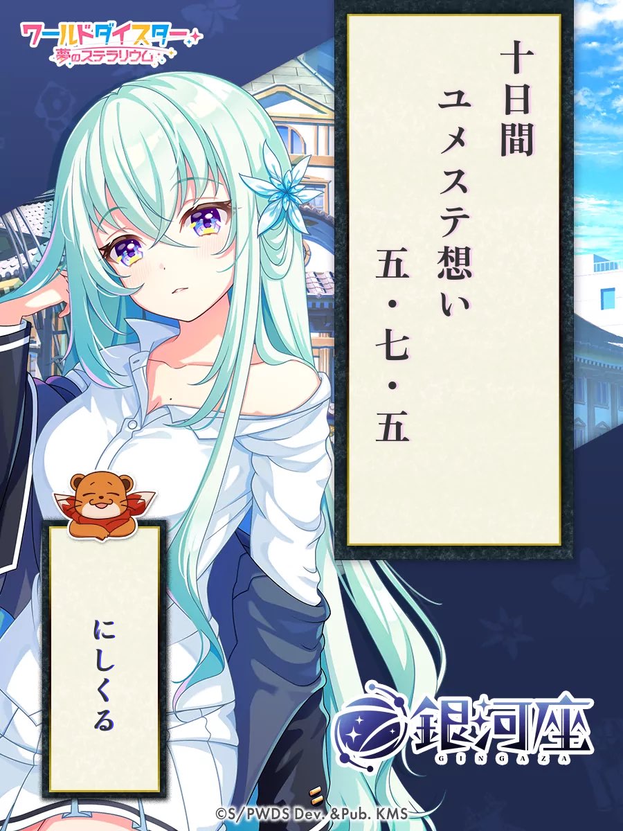 下記の「ユメステ川柳メーカー」で川柳を作成し、ユメステ公式Discord内の「🌸|川柳大会」チャンネルに川柳画像もしくはX(旧:Twitter)のポストURLを投稿しよう♫