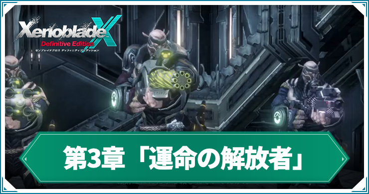 ゼノブレイドクロスDE(XenobladeXDE)の「第3章「運命の解放者」」について掲載しています。ストーリークエストや加入キャラ、攻略チャートをまとめていますので、ゼノブレイドクロス ディフィニティブエディション(Switch)の攻略にお役立てください。