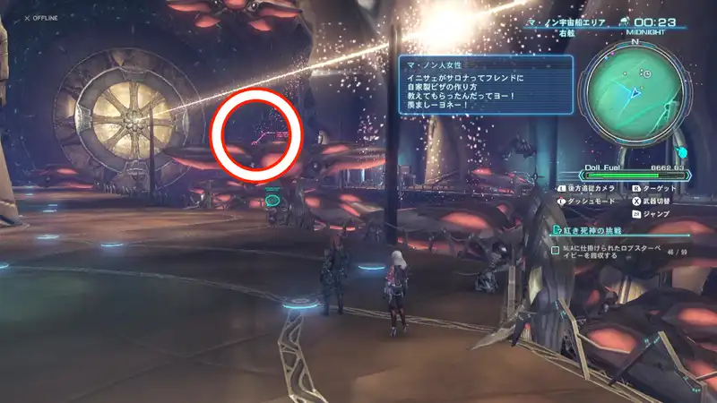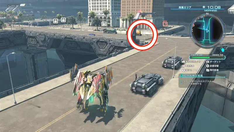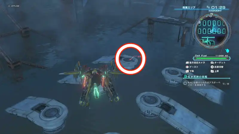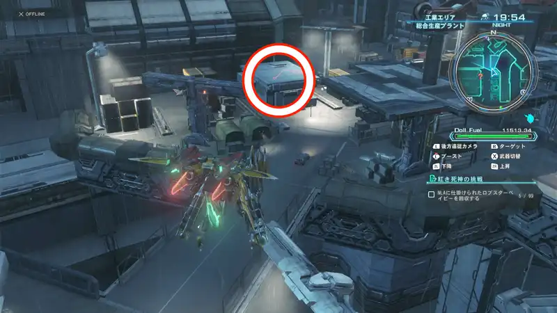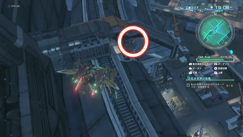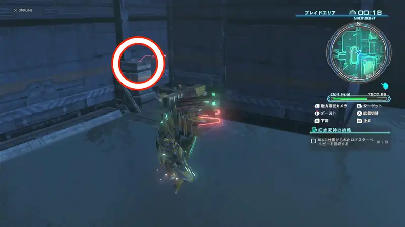 紅き死神への挑戦ではNLAの至る所に隠されたロブスタベイビーを探すことになるが、ブレイドタワー屋上など通常では行くことができない場所にも配置されているため、フライトユニットを解放しておく必要がある。
