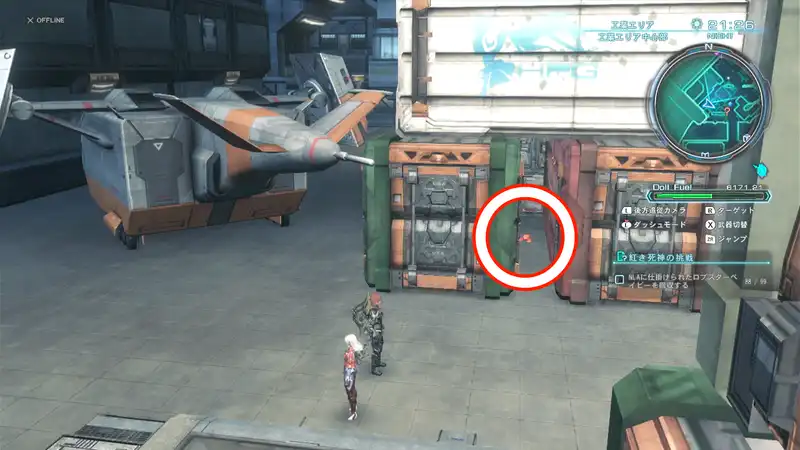 | ・工業エリア中心部のエレベーター下にある作業用ドール付近 | |