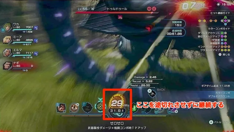 リキャスト、火力、敵の耐性など戦闘におけるすべての点でメリットがあるため中盤以降のインナー戦では必須級のテクニックと言える。