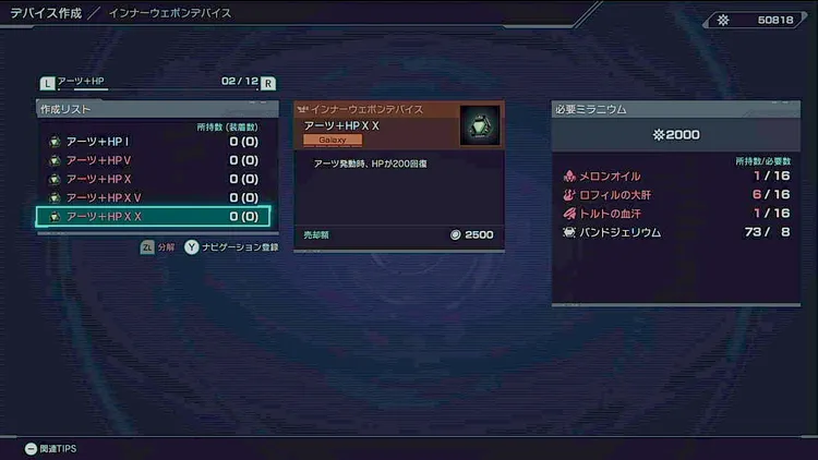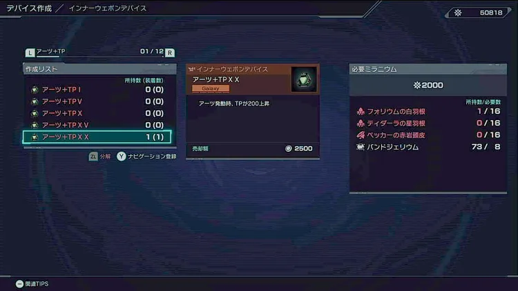インナースーツデバイスの「TPMAXアップ」で最大値を上げておくことで余分ができ、溜め直すための時間を省略できるためおすすめ。