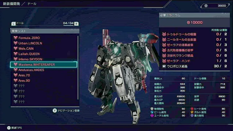 XD0650 Mastema.ST | 50 | <入手方法> ・ショップ購入 価格:3520000G <条件> ・ノーマルQ「ドールライセンス」クリア ・サクラバ重工の企業レベル5 |