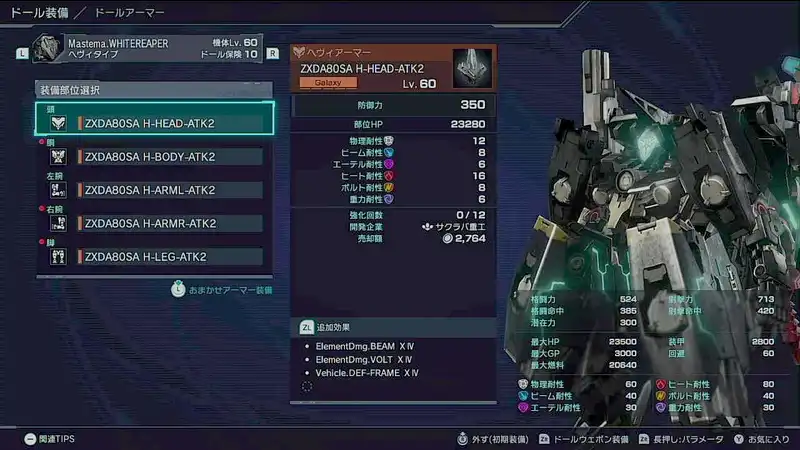 高い射撃性能とビーム属性強化アフィックスを持つ「Mastema.WHITEREAPER」をベースとして、ウォーター・ナルキーの感知範囲外から攻撃できる「MDS-SX560SA M-Sniper」を必ず装備しておこう。