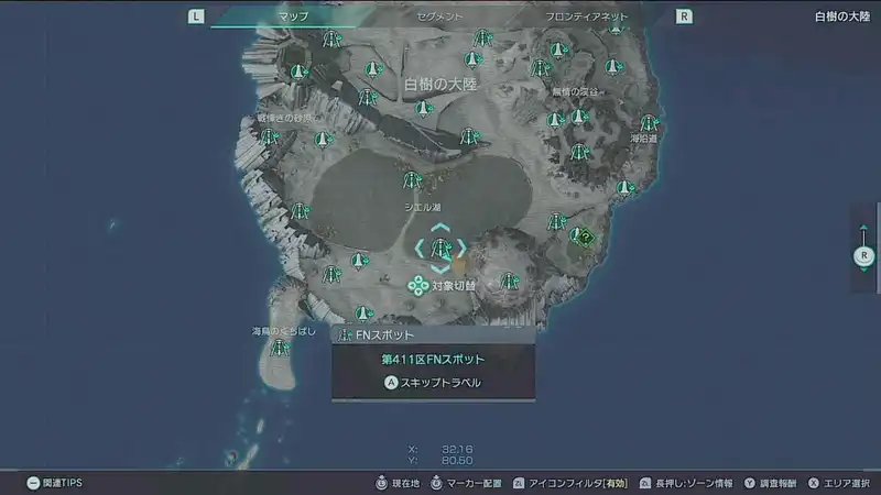 - 白樹の大陸の第411区FNスポットにスキップトラベルする