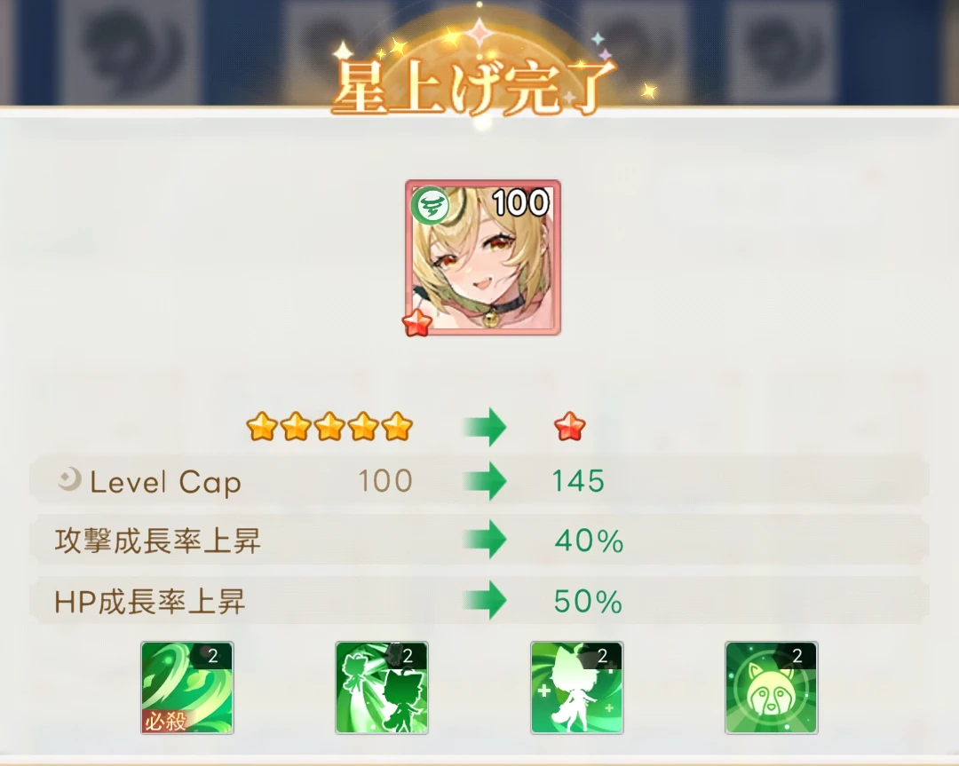 ヤバ少女の育成において星上げが重要な要素となっており、星上げが進まないとレベル上限やスキル効果を強化することができないため、同キャラの入手しやすさが重要な選定基準となっている。
