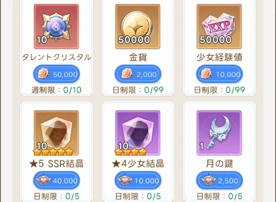 また、月の鍵でも★5 SSR結晶が入手できる可能性があるので、無理に殿堂ポイントで★5 SSR結晶を交換する必要はない。