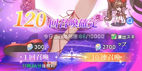 フェアリー召喚(GRキャラガチャ)の天井は120回