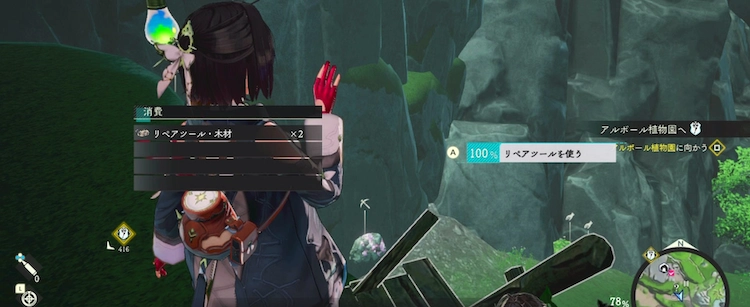 レシピ解放後であれば、略式調合でリペアツール・木材を作成することができる。