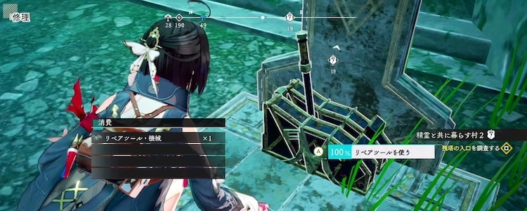 破損オブジェクトは宝箱の他、扉やレバー、ジップラインや梯子などが存在するが、必要なリペアツールの種類は、破損オブジェクトごとに固定というわけではないので、修理する際に要求されるリペアツールを柔軟に用意する必要がある。
