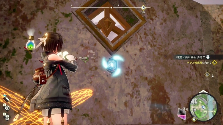 ユミアの杖銃に通常弾をこめて撃つことで、遠距離や高所のギミックを起動したり、素材を入手したりすることが可能だ。