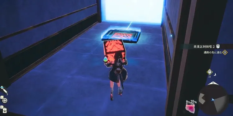 制御塔の入り口でスイッチを起動し、塔内部に移動。イベント後に「商業区制御塔1」が発生する。