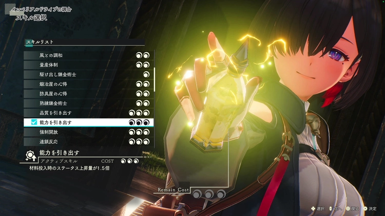 多くのステータス上昇アイテムを入れるため、材料投入時のステータス上昇量が1.5倍される「能力を引き出す」を選択しよう。